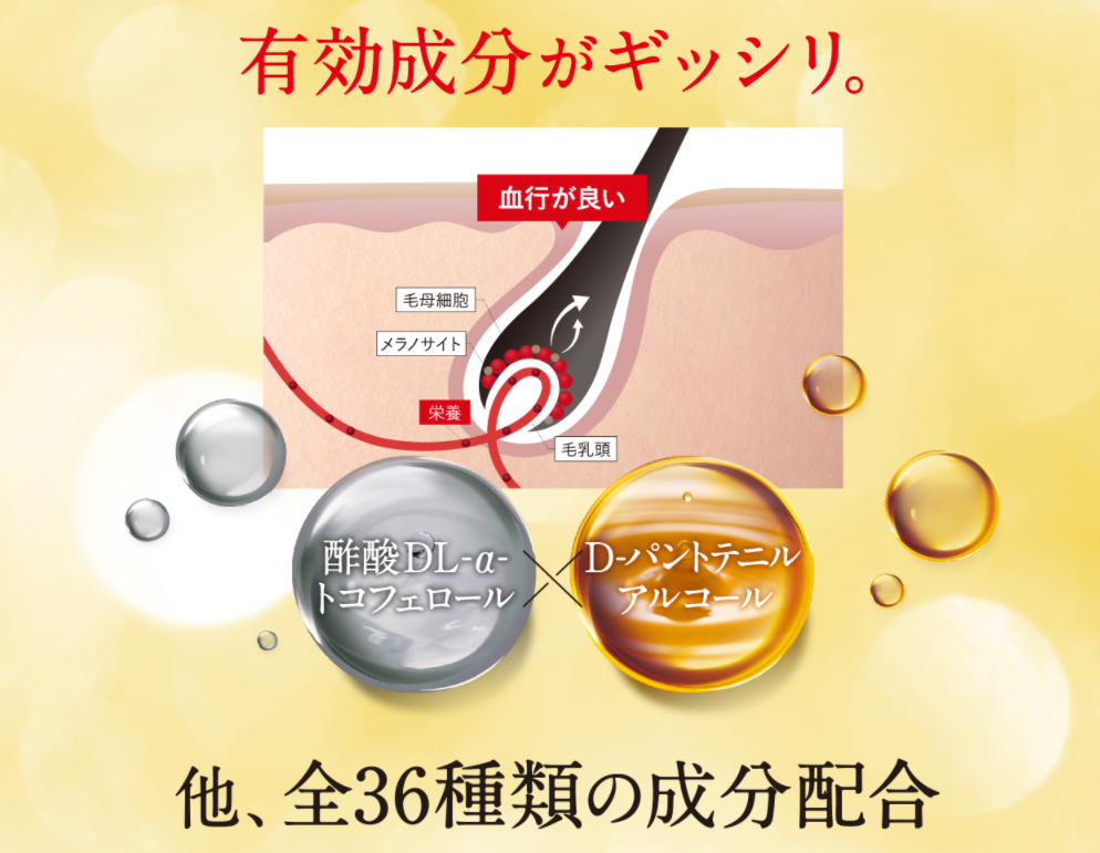 酢酸D‐α‐トコフェロールと毛根を大きく育てるD‐パンテニル