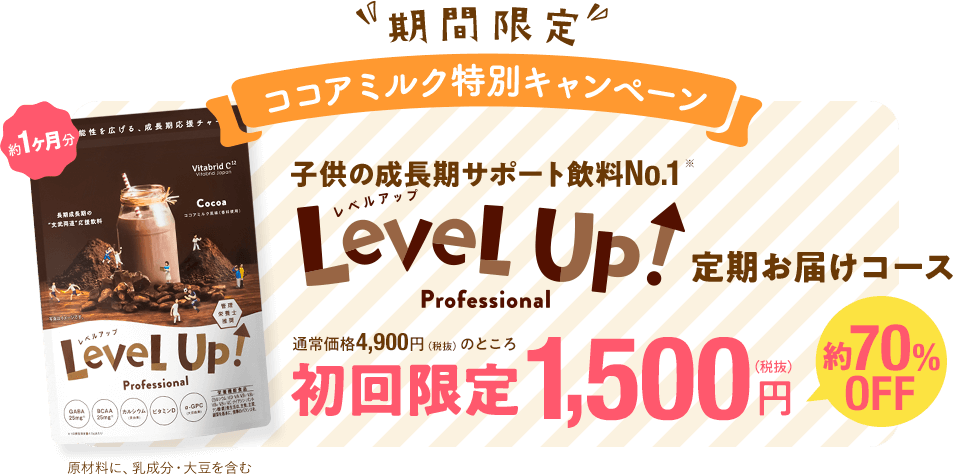 「子供の成長期サポート飲料No.1※」にも認定されているレベルアップ