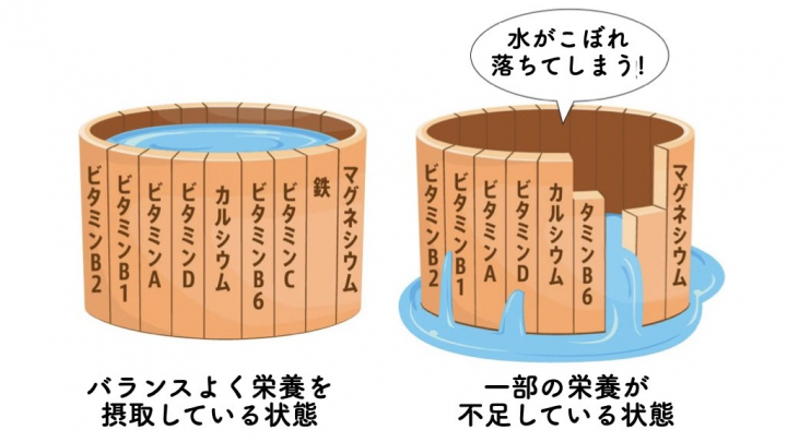 この図のように、栄養バランスが整ってこそ、将来の可能性が「伸びる」健康な身体になるのです。