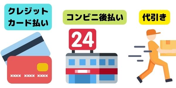 支払方法も充実していて、クレジットカードが無くてもコンビニの後払いや代引きも選択できました。