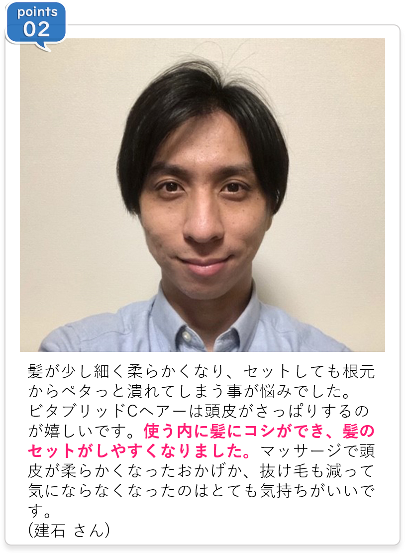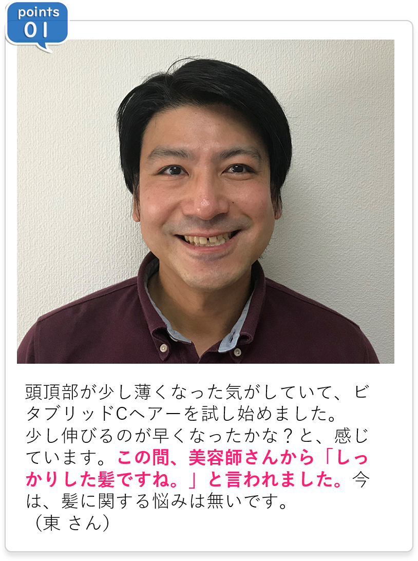 激変した私の髪を見て、実は奥さんもビタブリッドCヘアーを使い始めたんです…。