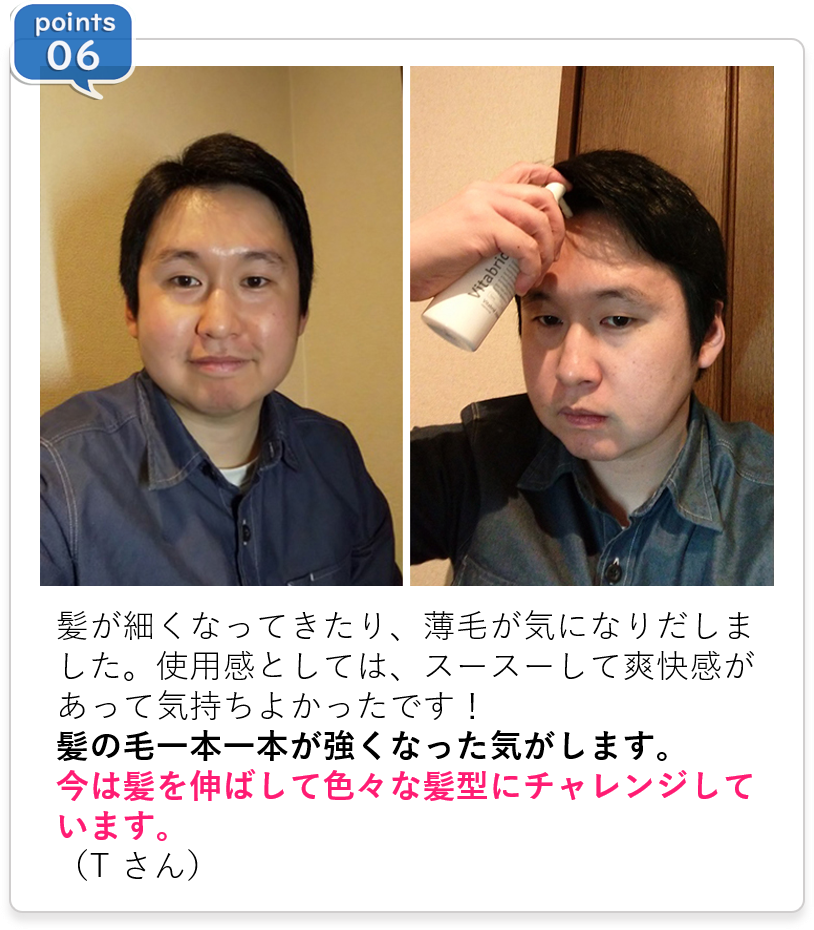 使い始めてから、明らかに、薄毛が気にならなくなりました。