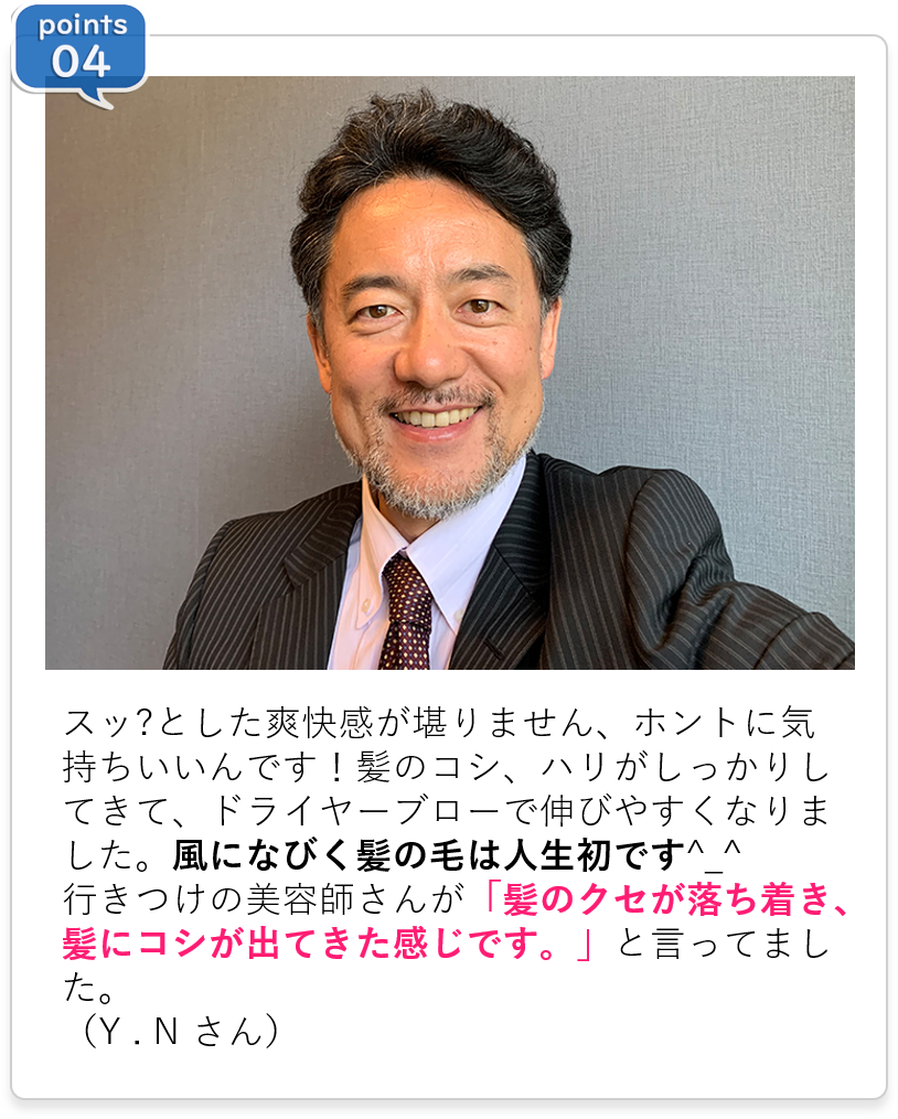 続けていけば、10年前、20年前のイキイキした髪を取り戻せるのではないかという期待もしています。