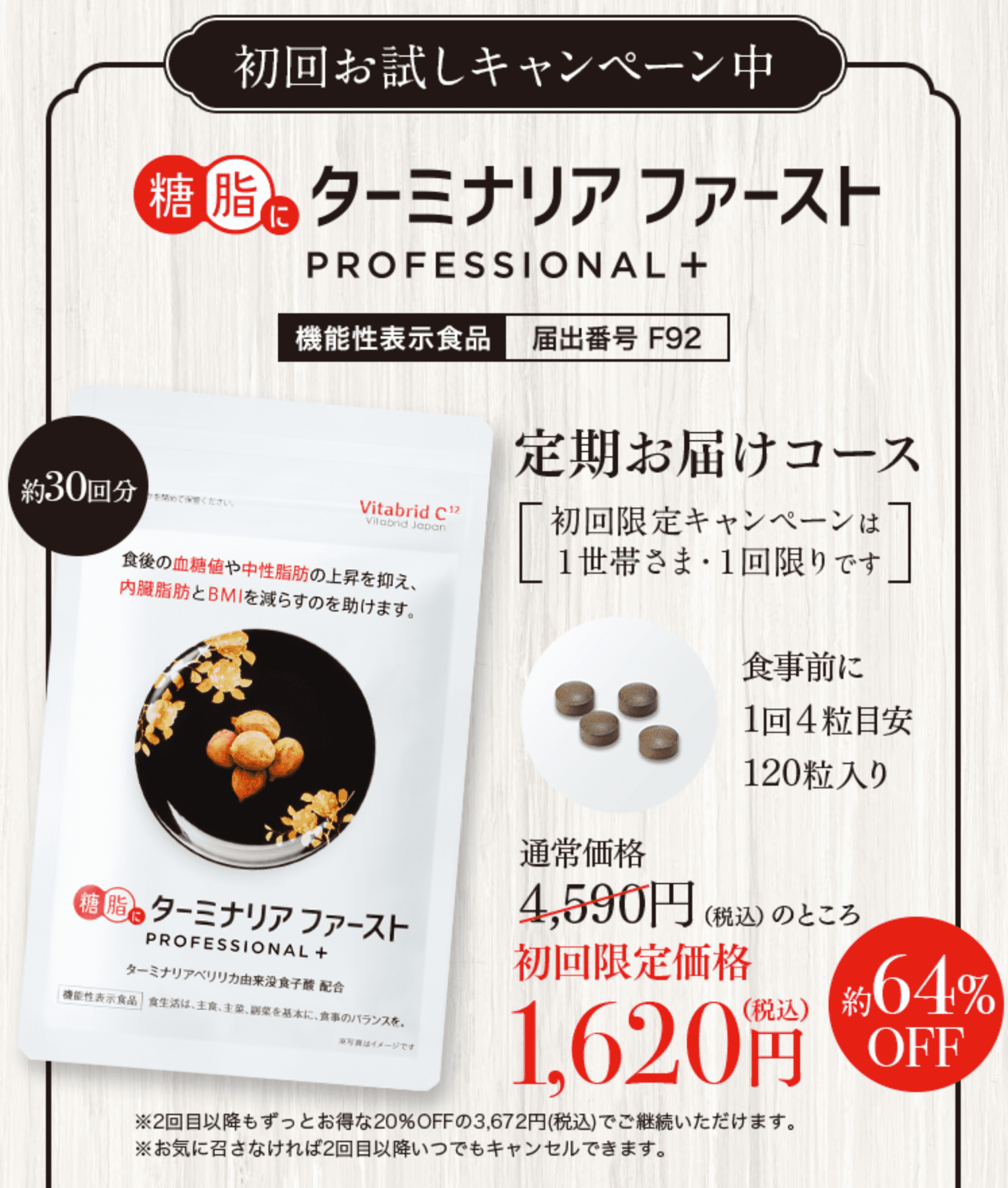 “糖脂抑制サプリ” ターミナリアファーストが 64%OFF!